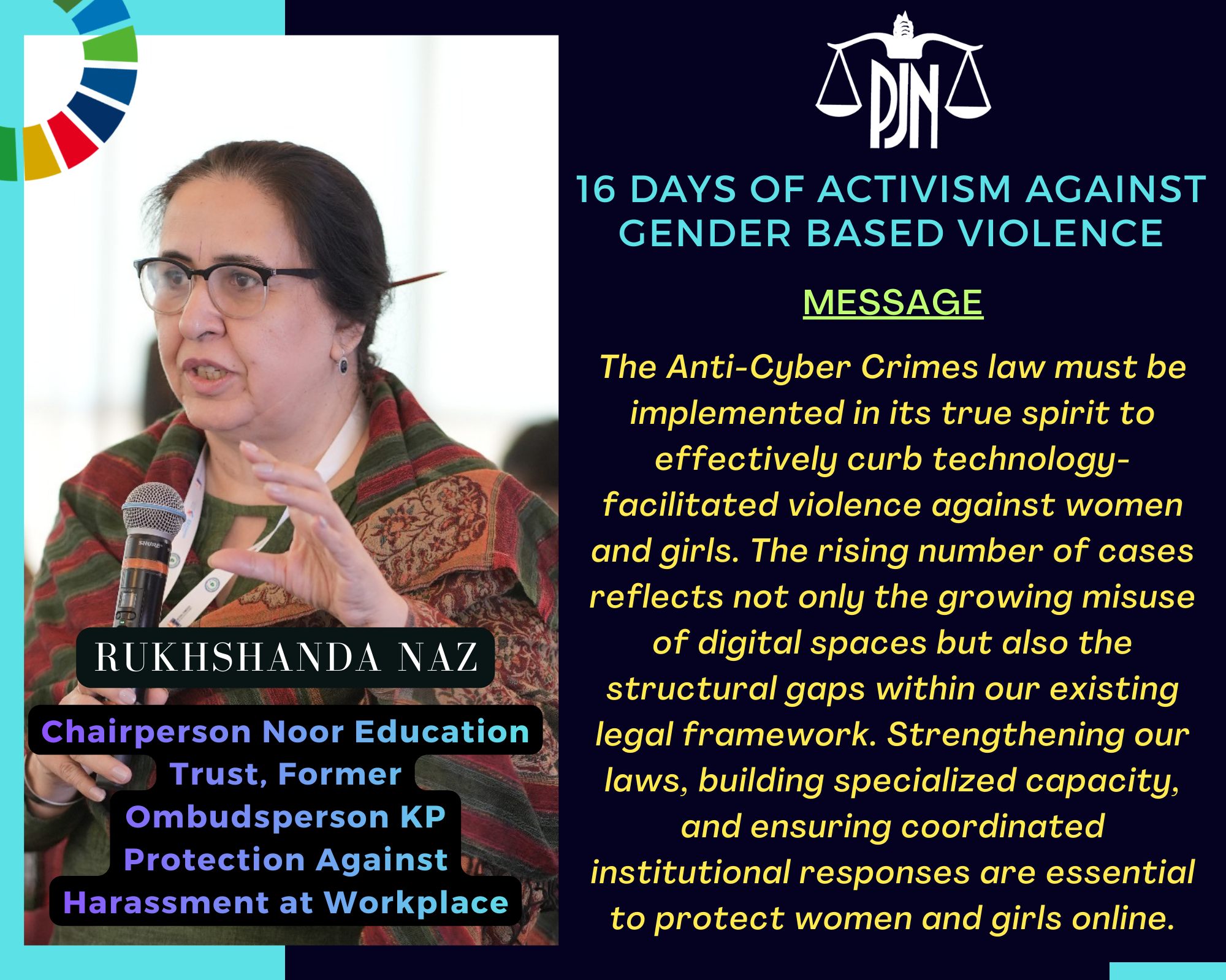 Every woman and girl deserves a safe and respectful digital world. To end technology-facilitated abuse, Anti-Cyber Crimes laws must be implemented with full commitment and accountability. Strengthened legal frameworks, trained enforcement bodies, and coordinated institutional action are essential to protecting women and girls online.